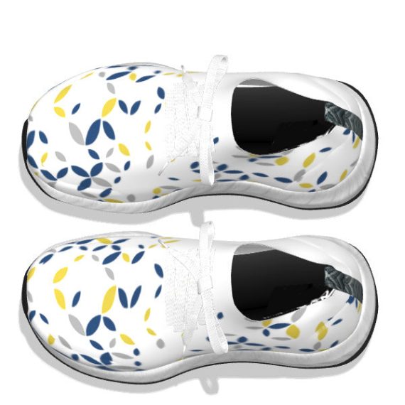 A sweet teal offsets the?lighter colors on this pattern with petal-like shapes?for a playful pair of summer or spring sneakers.